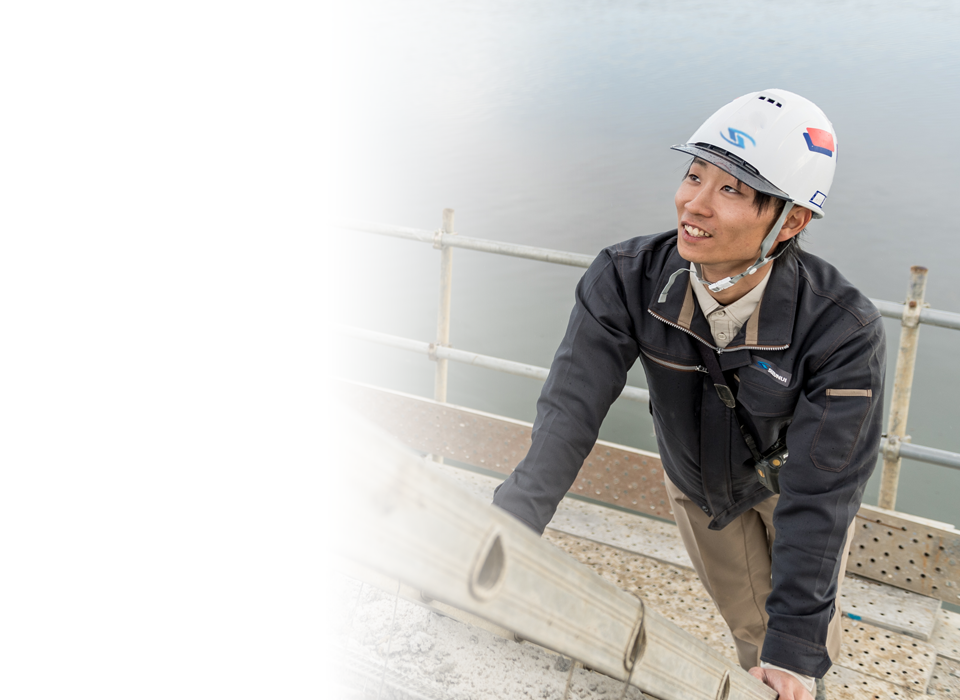 私たちの仕事はものを作る仕事です。現場では、工程が日々進んでいて毎日違う作業になるのが新鮮で、構造物が出来上がっていく過程にも満足感があります。ものづくりに興味のある人、自分を成長させたい人には、面白さややりがいのある仕事だと思います。